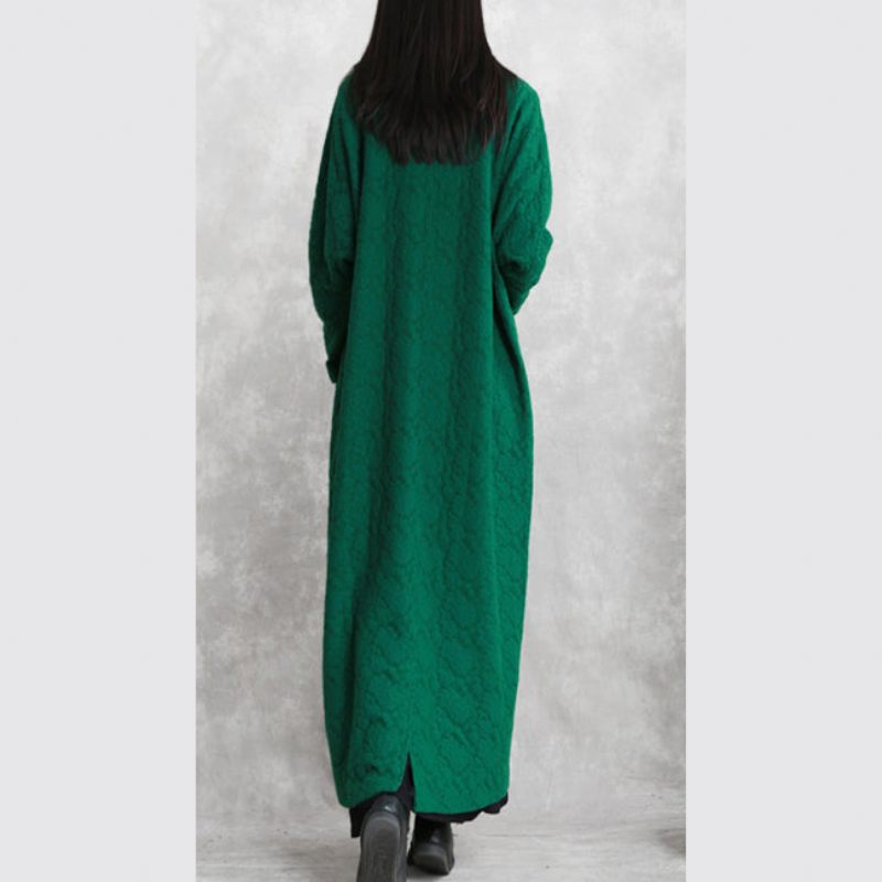 Modegrön Maxirock Casual Stativfickor Bomullslinne Kappa Dam Långärmad Baggy Coat