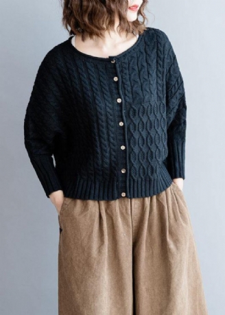 Modern Blå O-ringad Knapp Patchwork Knit Girl Cardigan Fall