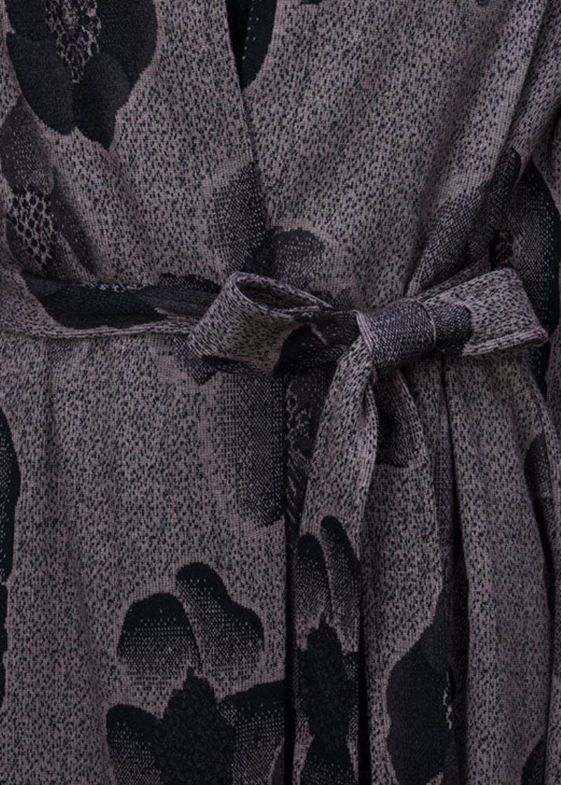 Modern Grå Asymmetriskt Tryck Yllerock Vinter