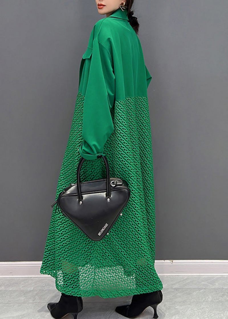 Moderna Gröna Spårade Maxi Trench Coats Spring