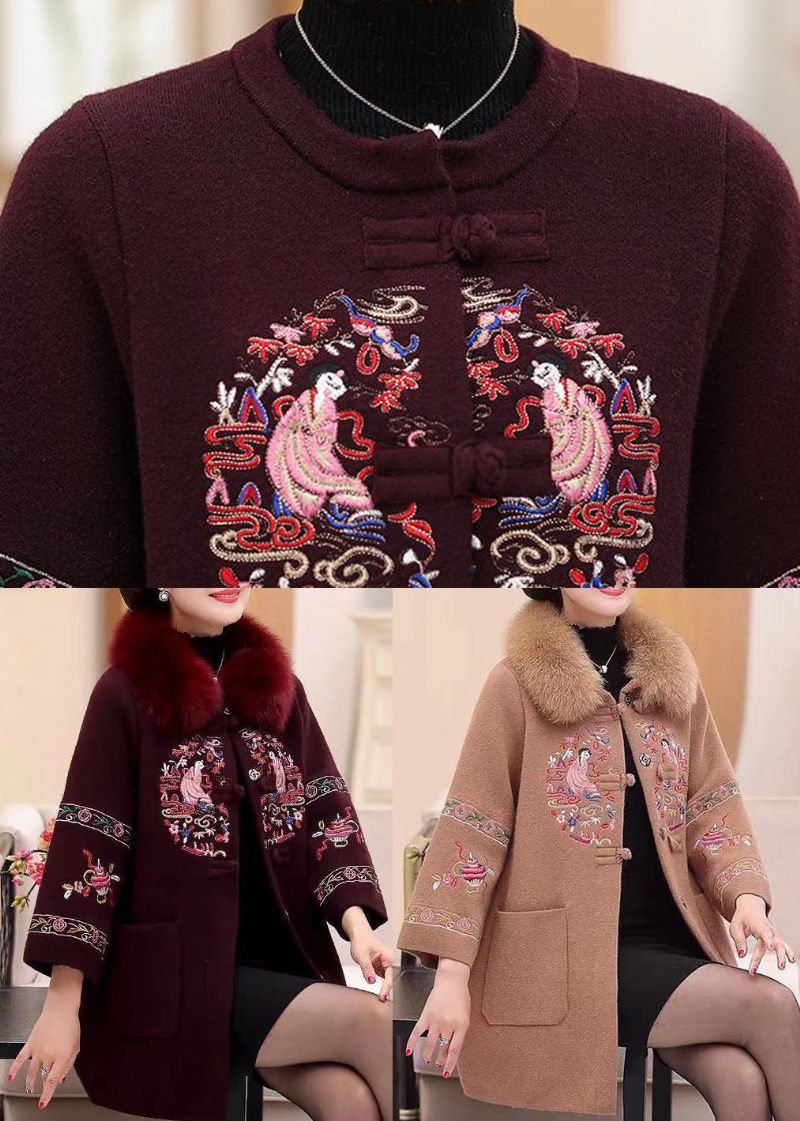 Moderna Lila Rävkrage Broderade Fickor Yllerockar Vinter
