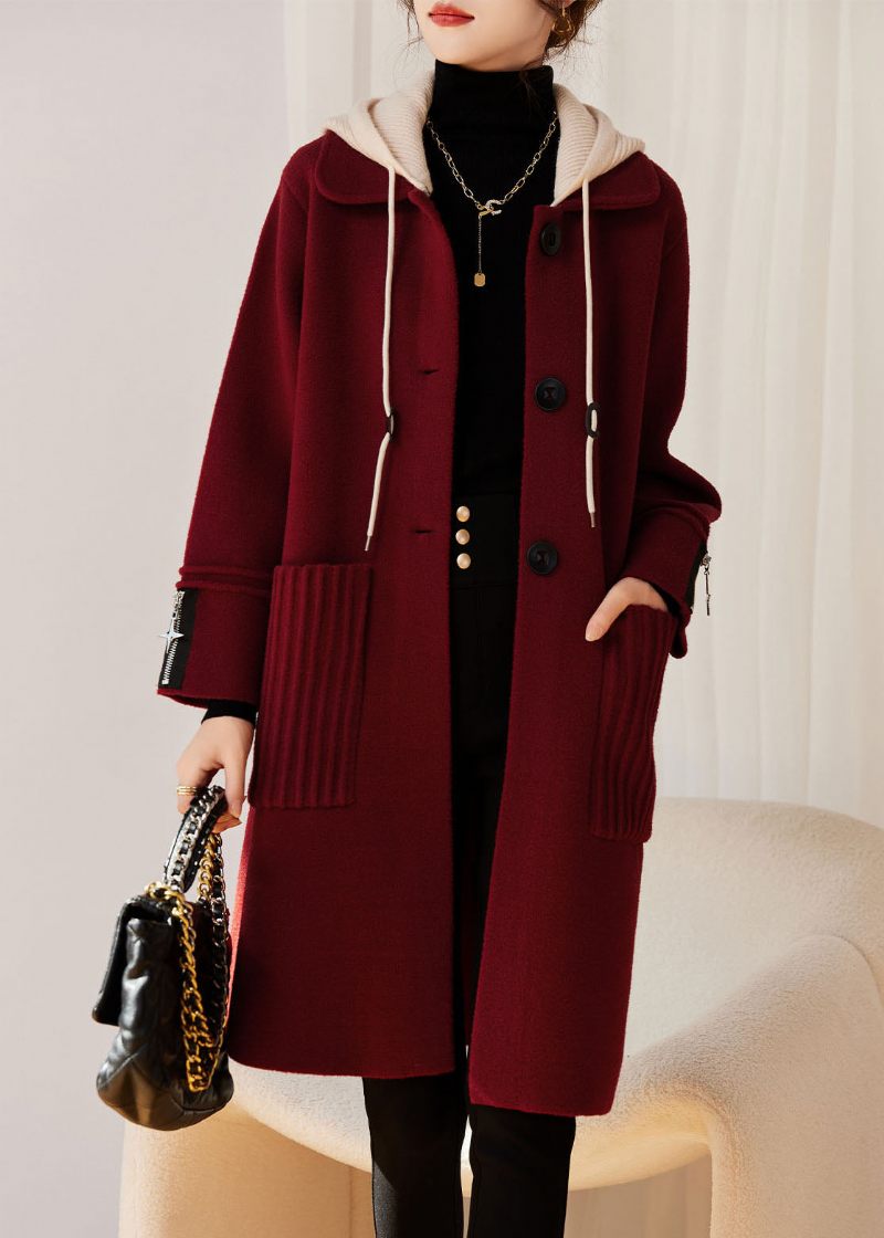 Moderna Röda Dragsko I Yllehuvtröjor Kappor Långärmad