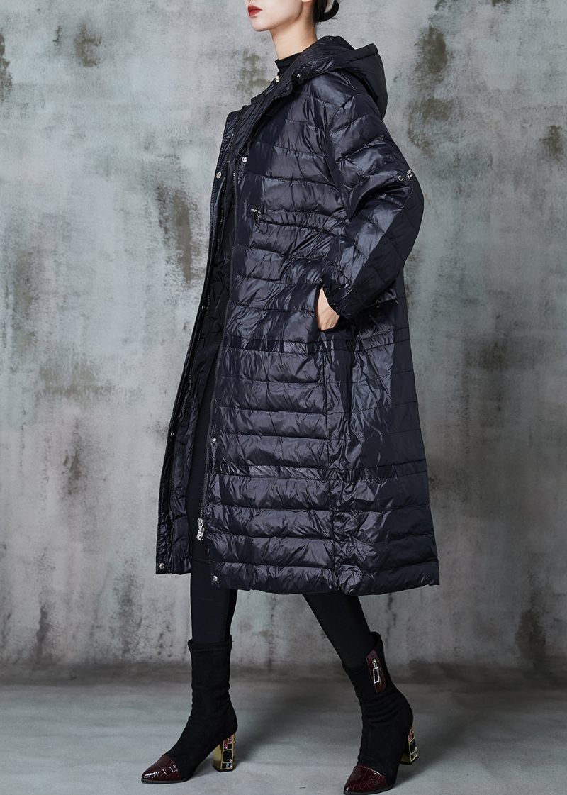 Monterad Svart Dragsko Patchwork Duck Down Puffer Jacka Vinter