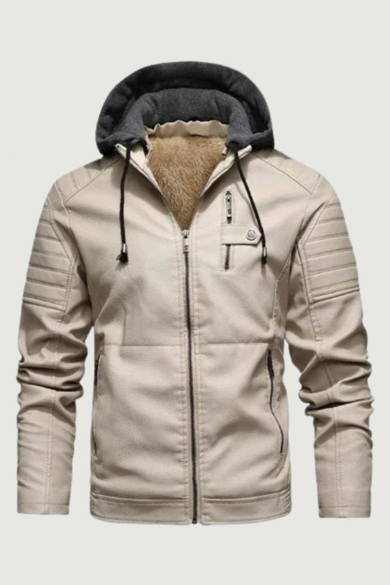 Motorcykelhuvtröja Läderjacka Män Solid Fleece Casual Windjacka Jackor Smal Militär Taktisk Tjocka Rockar Vinter
