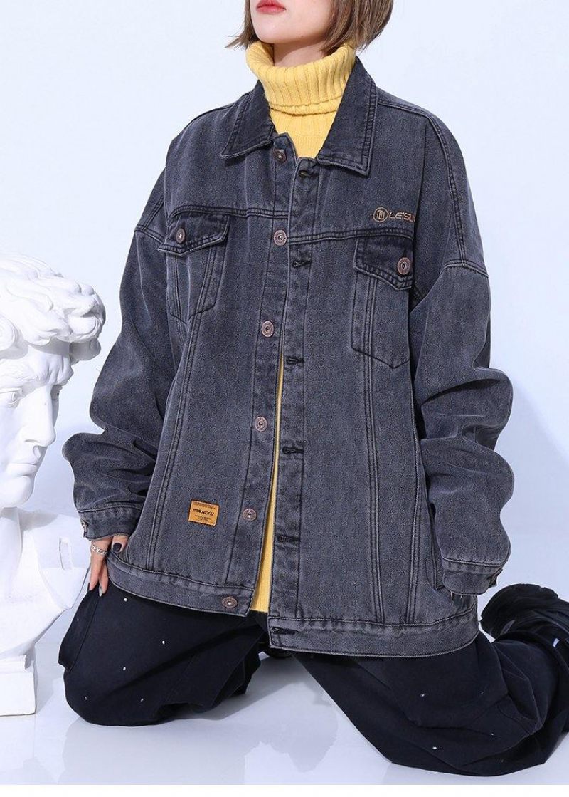 Natural Denim Plus Size Box Coat Hooded Asymmetrisk Ytterkläder