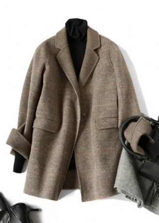 Naturgrå Fin Kappa För Kvinna Presenter O Hals Button Down Kappor
