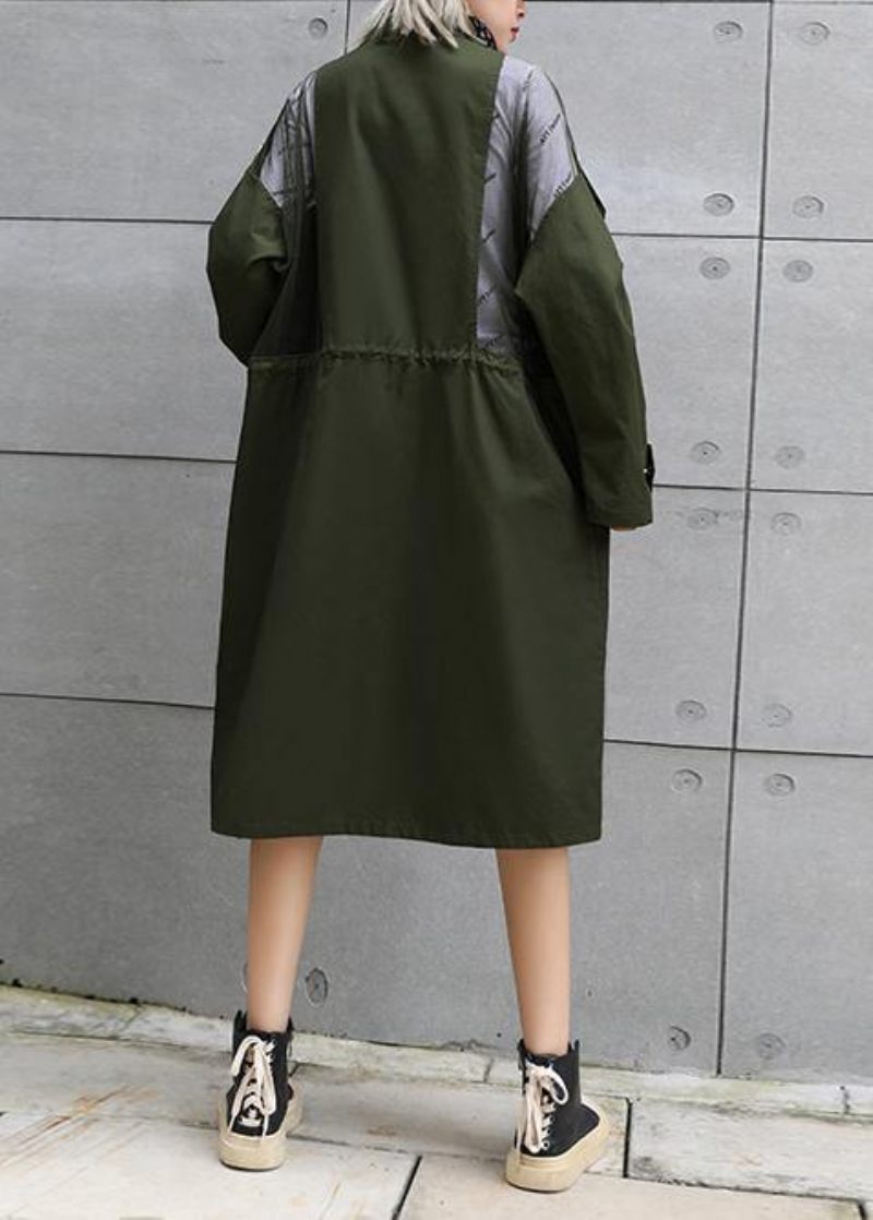 Ny Armégrön Överrock Trendiga Plus Size Långa Kavajer Med Dragsko