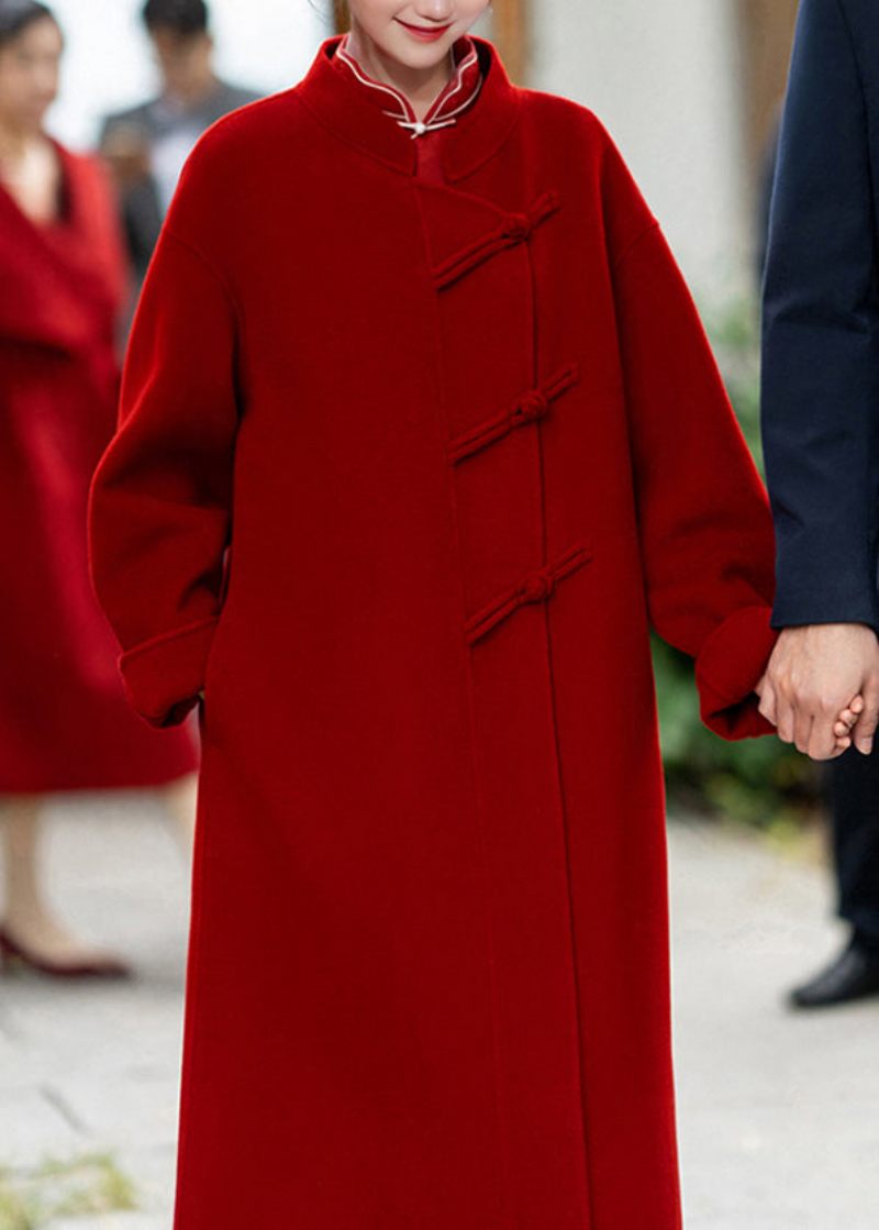 Ny Kinesisk Stil Röd Ståkrage Orientalisk Knapp Yllerock Höst