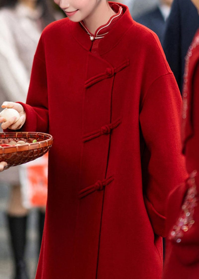 Ny Kinesisk Stil Röd Ståkrage Orientalisk Knapp Yllerock Höst