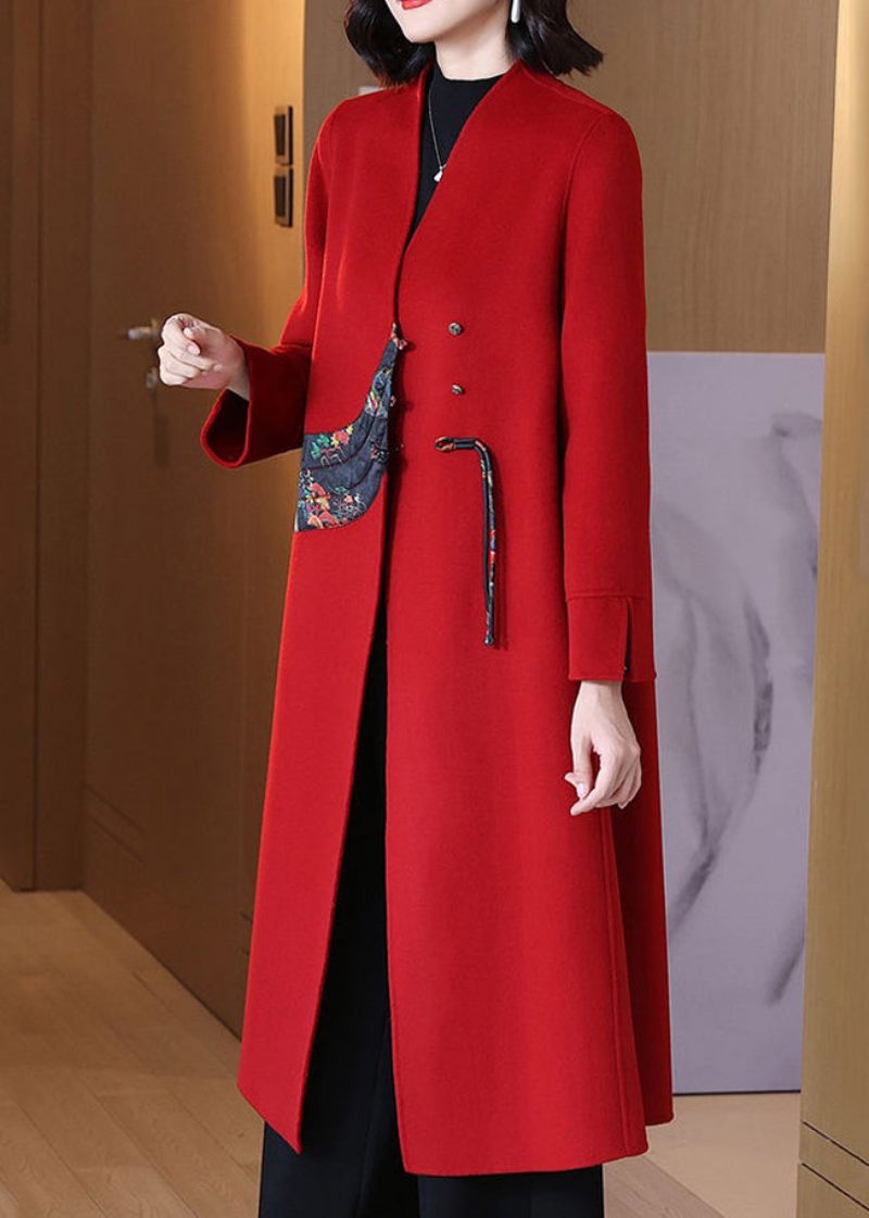 Ny Röd V-ringad Knapp Patchwork Ullrockar Långärmad