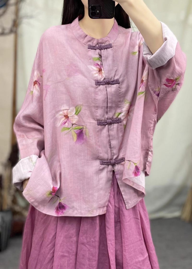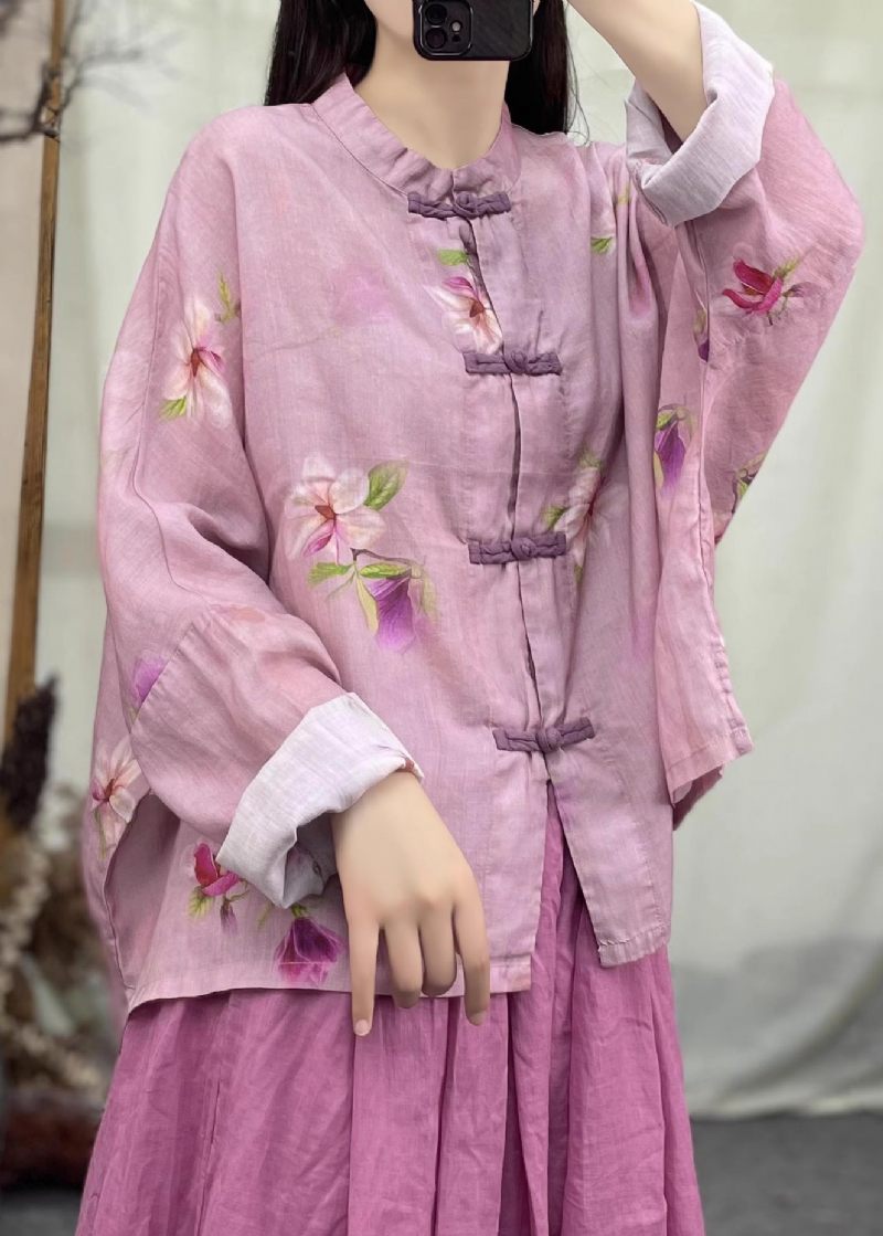 Ny Rosa O-halsknapp Patchwork Linnerock Vår