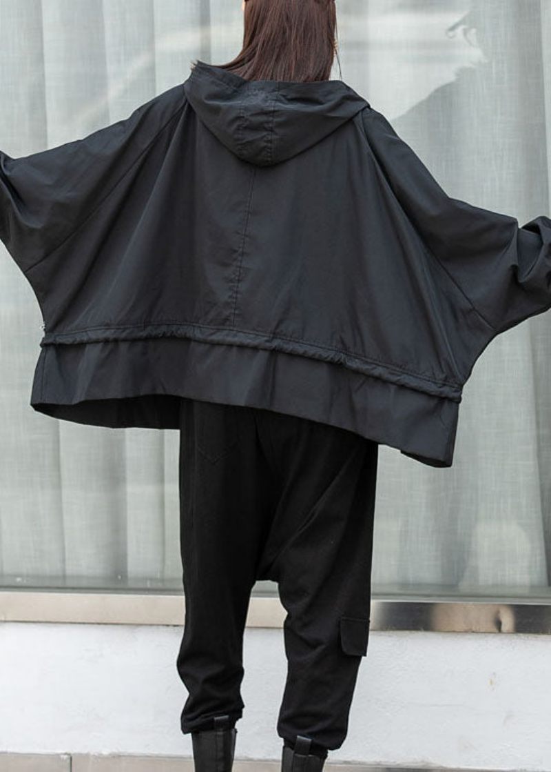 Ny Svart Fladdermusvingeärm Med Dragkedja I Lapptäcketryck Höstkappa