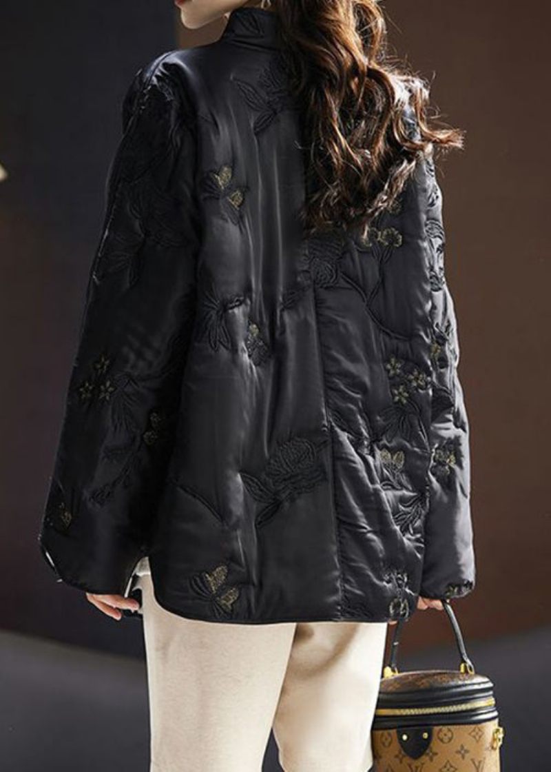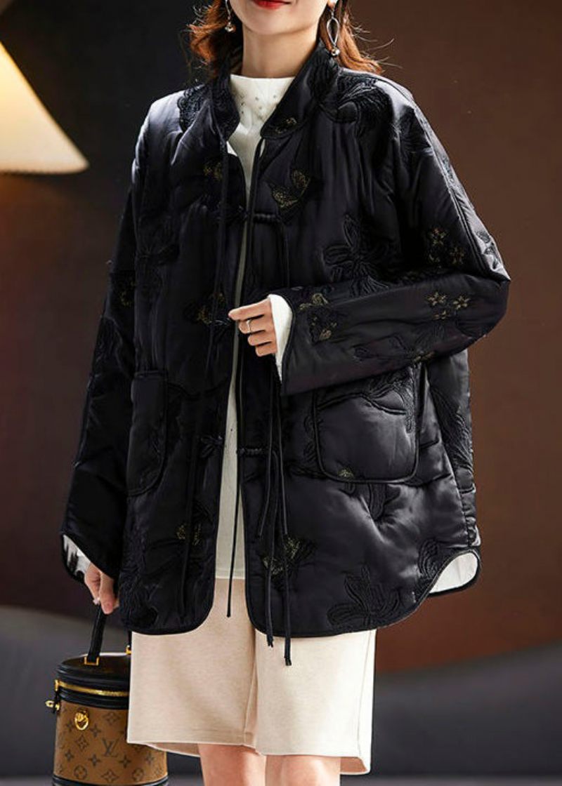 Ny Svart Kinesisk Knappbroderad Bomullsfylld Kappa Vår