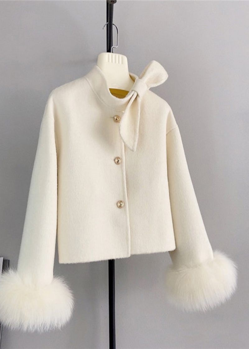Ny Vit Ullbågeknapp Rävhårmanschett Kort Kappa Vinter