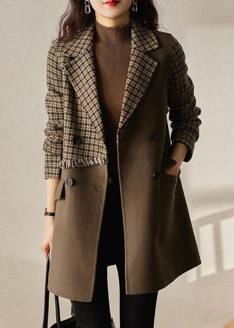 Nya Bruna Rutiga Fickor Patchwork Yllerock Långärmad