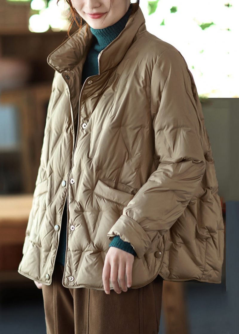 Nya Khaki Stativ Krage Knappfickor Duck Down Coat Långärmad