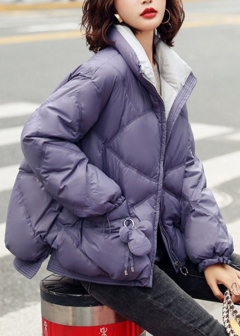 Nya Lila Stativ Krage Fickor Duck Down Puffer Jacka Vinter