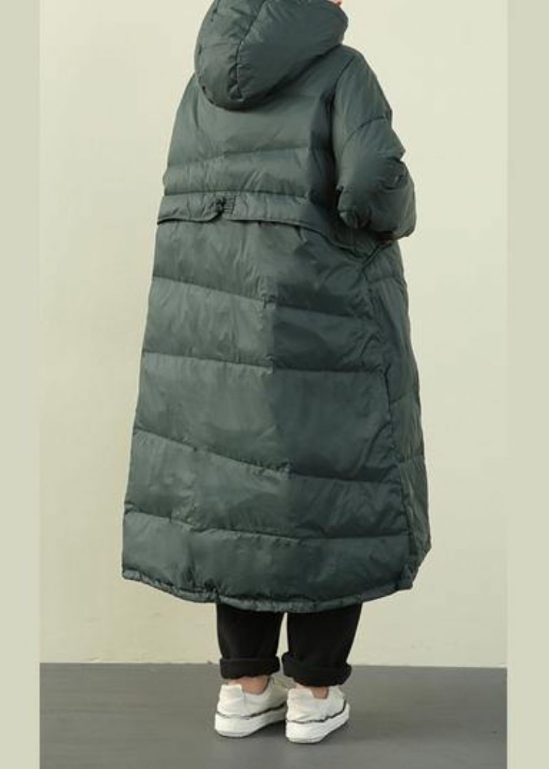 Nya Plus Size Kläder Puffers Jackor Grön Huva Button Down Goose Kappa