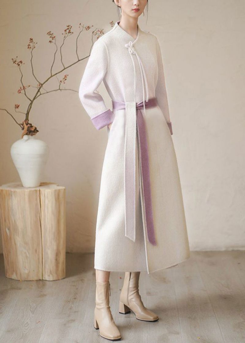 Nya Retro Beige Tofsfickor Tie Midja Yllerock Vinter