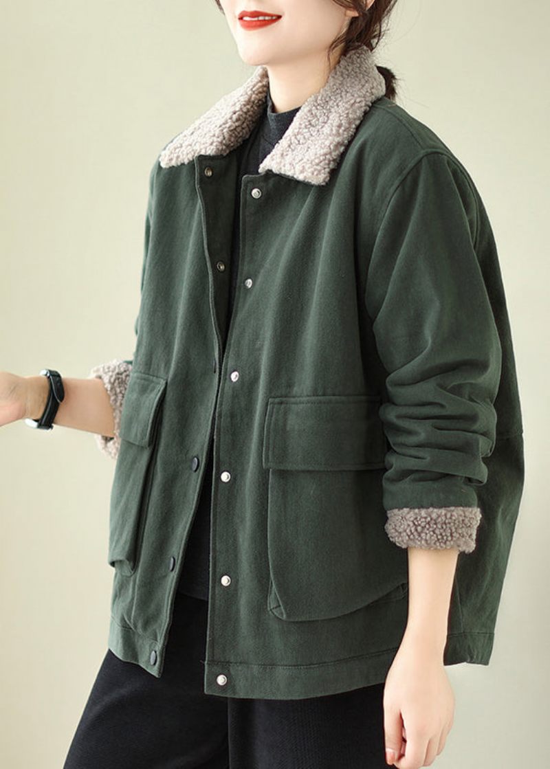 Nytt Kaffe Peter Pan Krage Fickor Fleece Ull Fodrad Jacka Vinter
