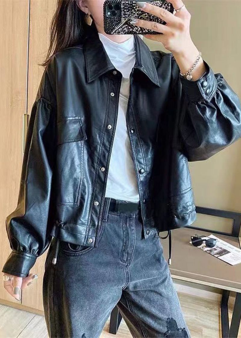 Nytt Kaffe Peter Pan Krage Fickor Konstläderjacka Våren