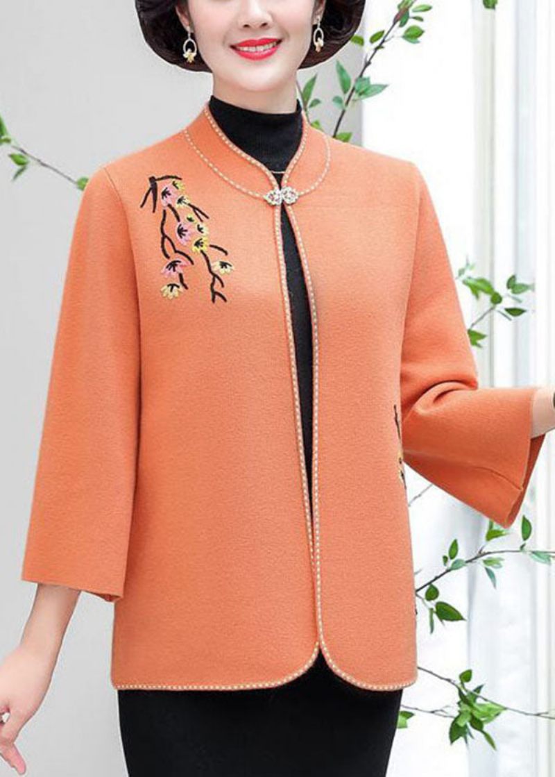 Orange Ylle Cardigans Broderade Stativ Krage Vinter