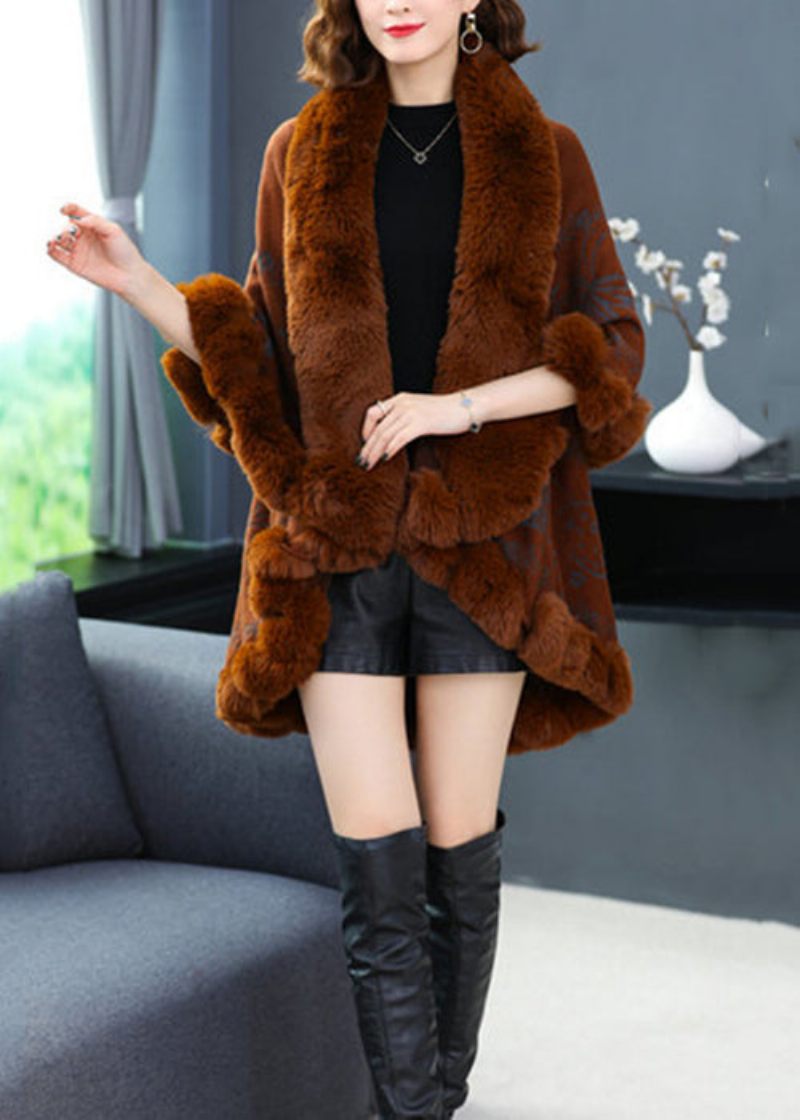 Organic Caramel V-halstryck Låg Hög Design Patchwork Woolencoats Höst
