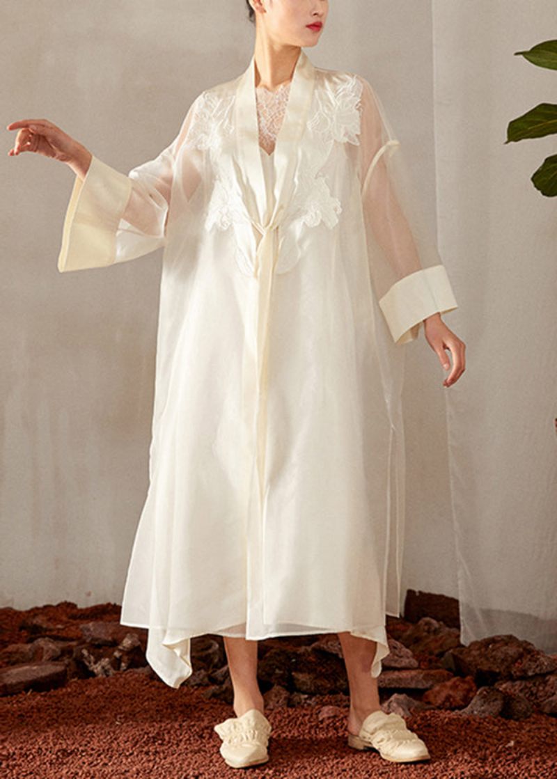 Original Kinesisk Stil Vit Broderad Spetsad Sidenkofta Sommar
