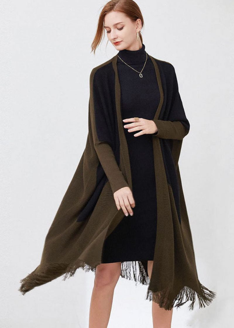 Originaldesign Grön Patchwork Tofs Ull Stickad Cardigan Långärmad