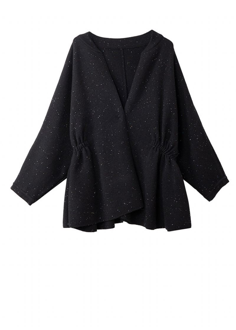 Plus Size Black Cinched Paljetter Stickad Lös Kappa Vinter