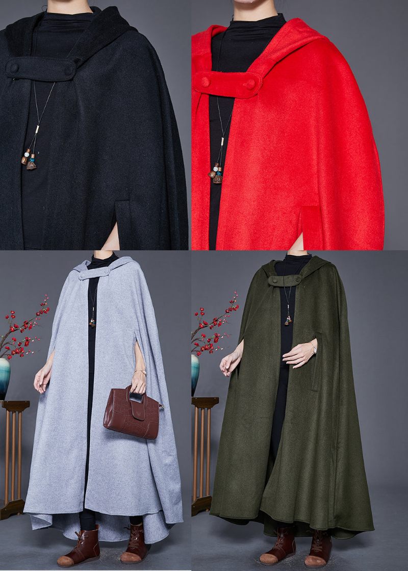 Plus Size Black Hooded Oversized Woolen Trench Cloak-ärmar