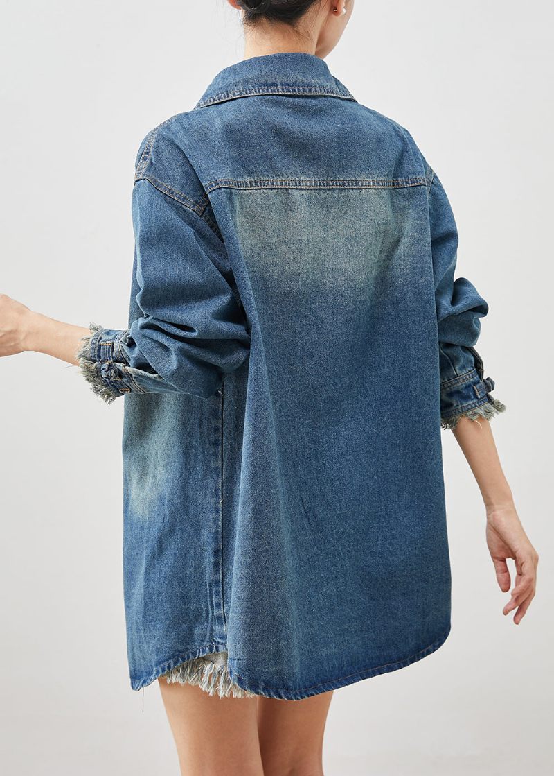 Plus Size Denim Blå Kinesisk Knapp Bomull Coat Ytterkläder Spring