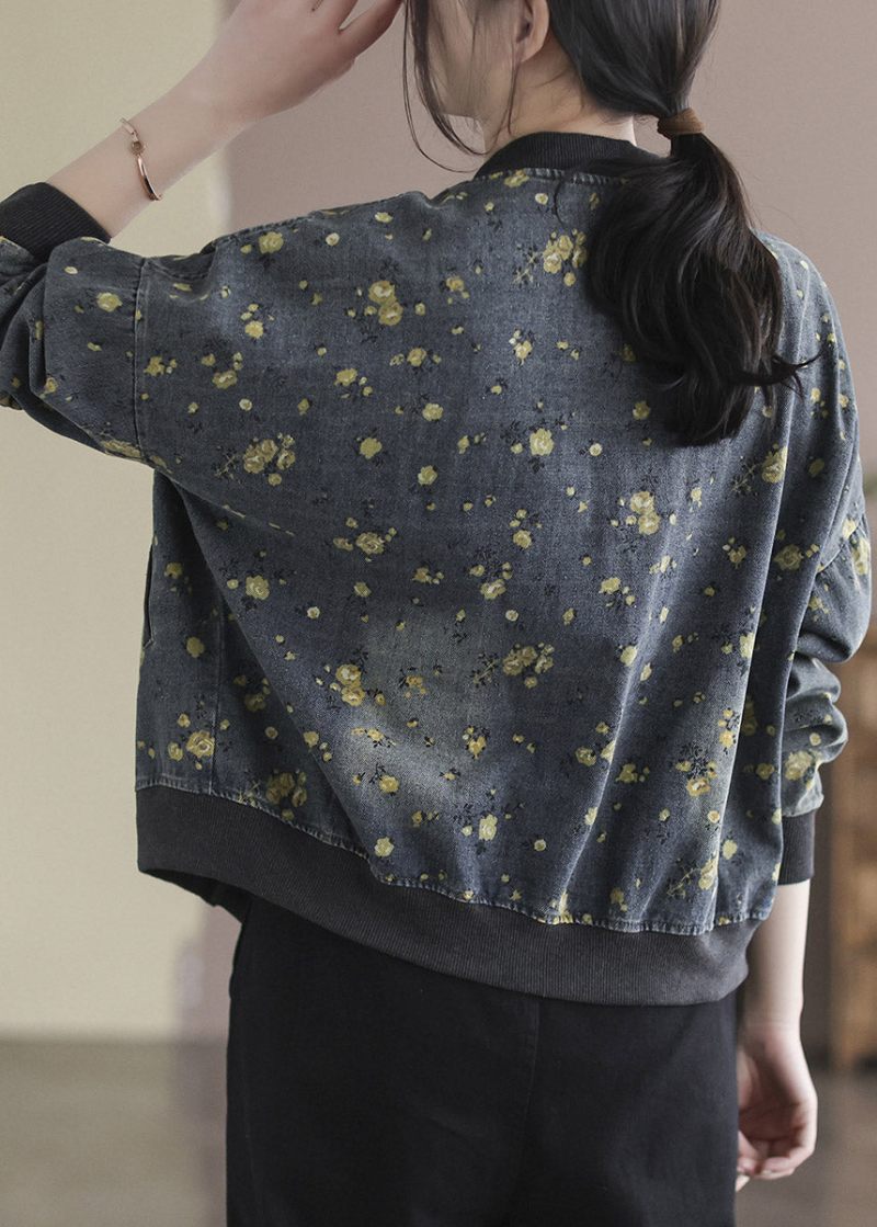 Plus Size Grå V-halstryck Bomull Denim Coats Spring