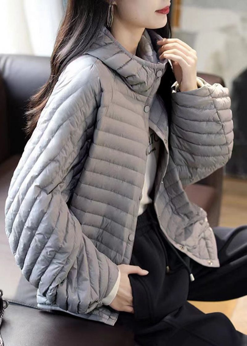 Plus Size Grårandig Knapp Fin Bomullsfylld Parka Vinter