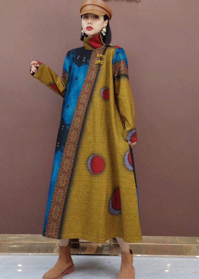 Plus Size Khaki Dot Print Ull Långa Klänningar Vår