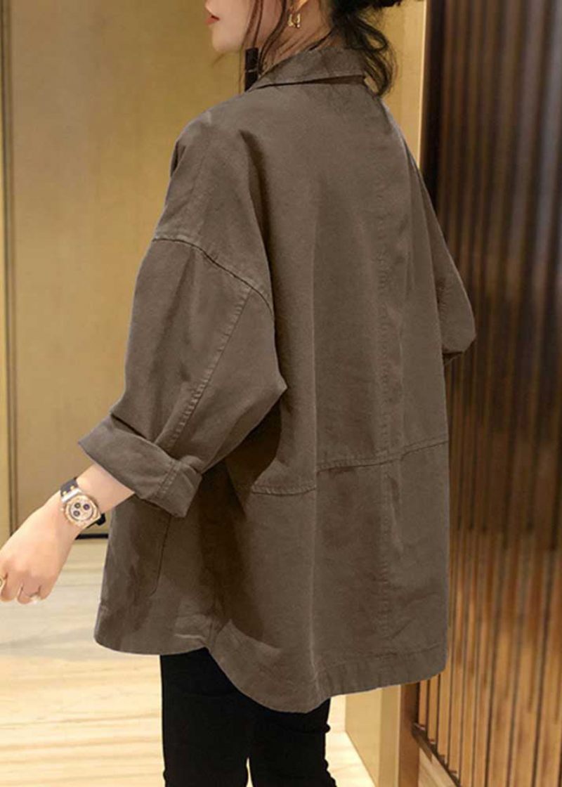 Plus Size Khaki Naggade Fickor Patchwork Bomullsrockar Höst