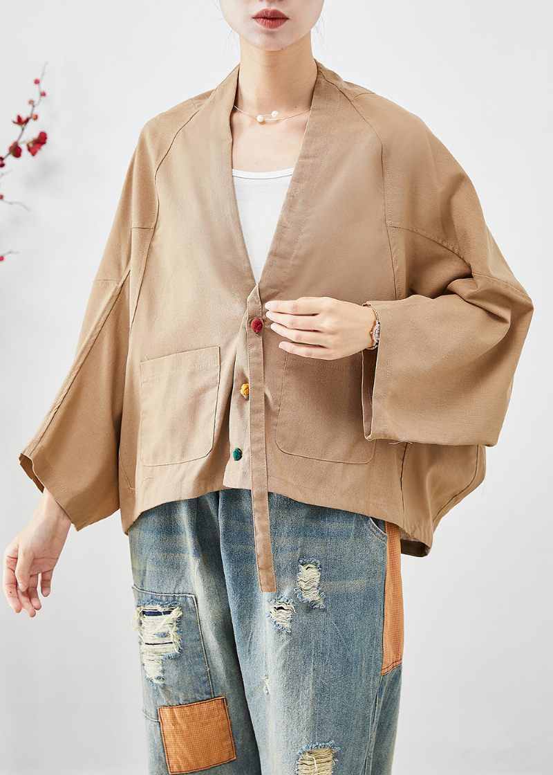 Plus Size Khaki Oversized Fickor Linnejackor Batwing Sleeve