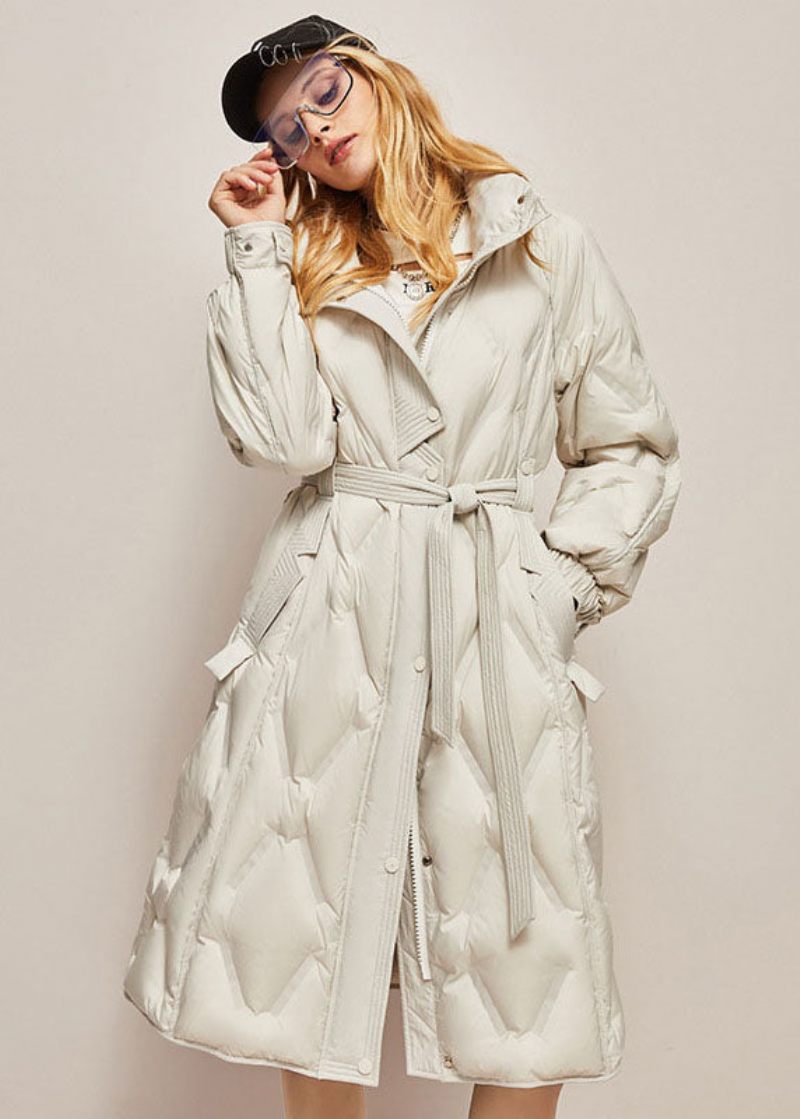 Plus Size Khaki Stativ Krage Zip Up Warm Duck Down Vinter Cinch Coats
