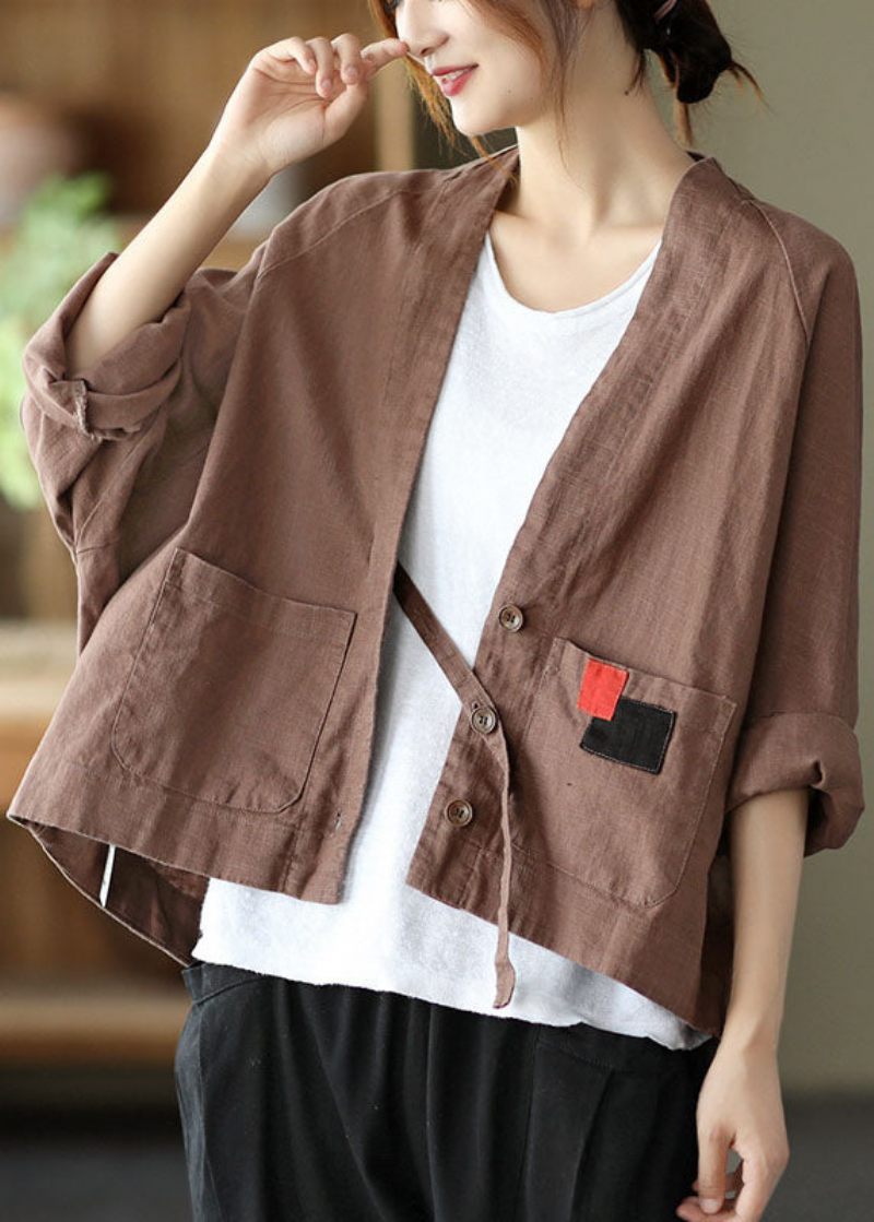 Plus Size Kvinnor Kaffe V-Hals Casual Coat SpringTyg: Linne