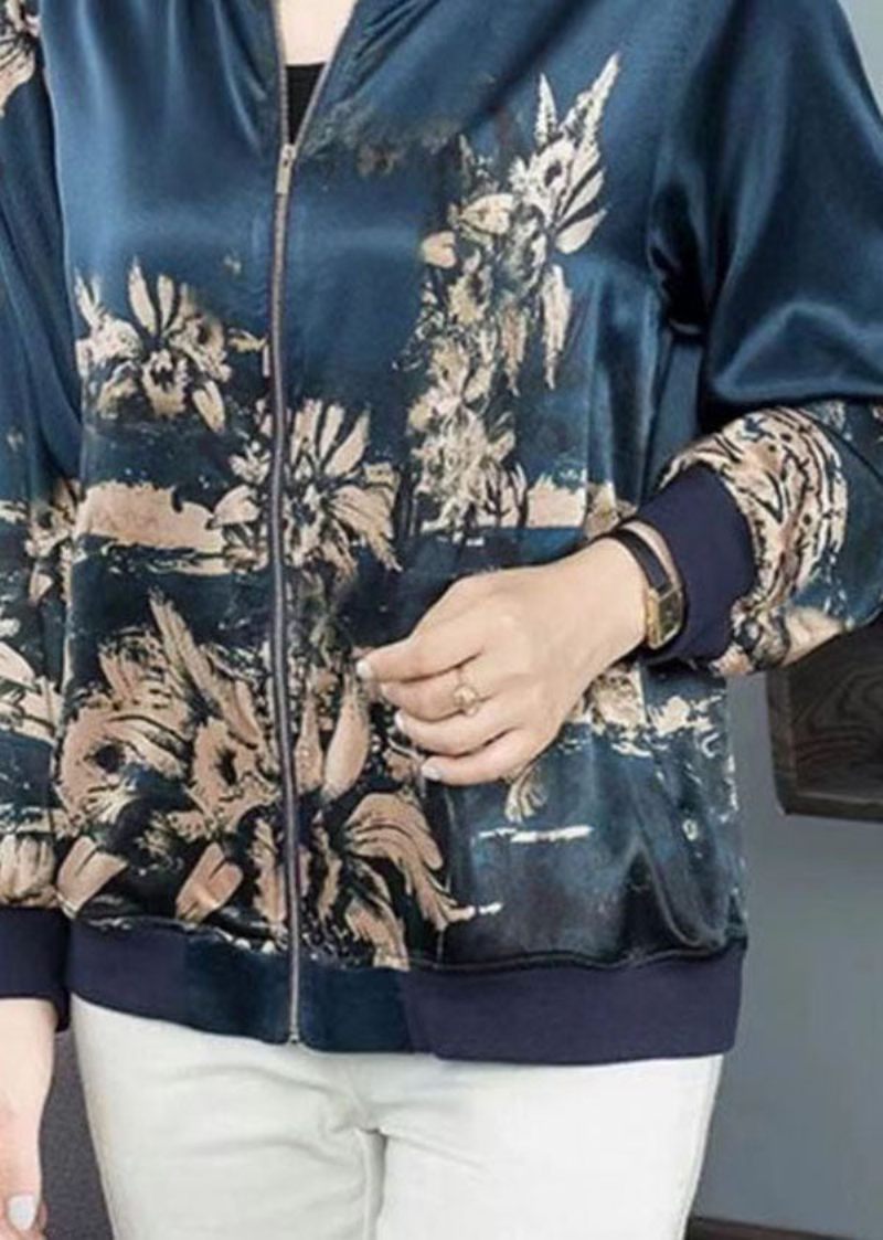 Plus Size Marin Stativ Krage Zip Up Print Sidenkappa Ytterkläder Höst