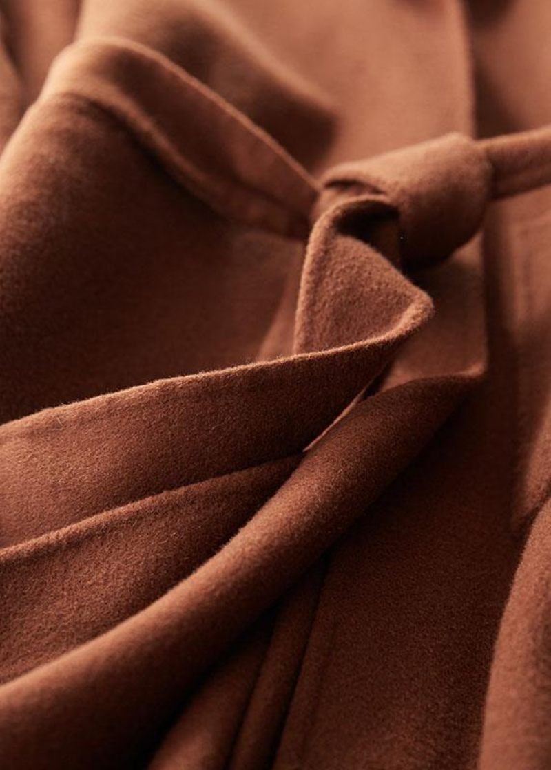 Plus Size Medellängd Kappa Naggad Brun Knyt Midja Sida Öppen Yllerock Dam