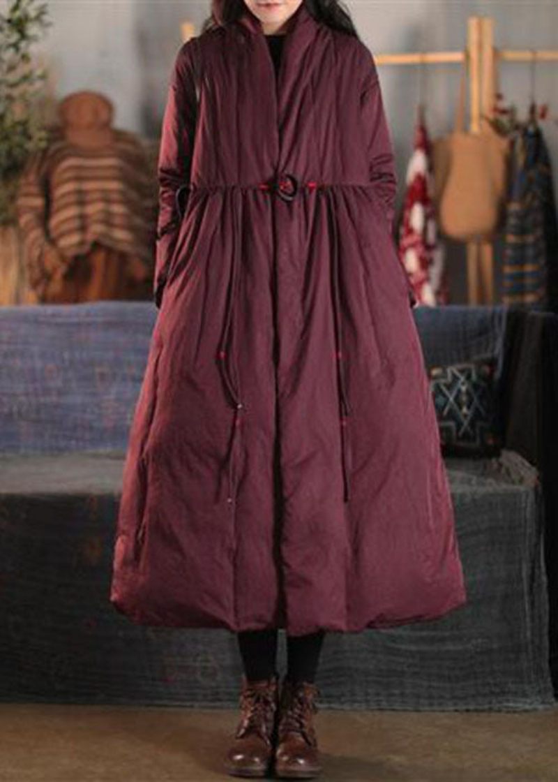 Plus Size Mulberry V-hals Broderade Fickor Anka Dunjacka Dam Vinter Kappor
