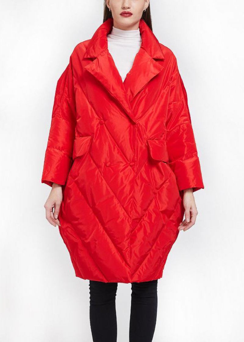 Plus Size Röd Peter Pan Krage Button Duck Down Coat Långärmad