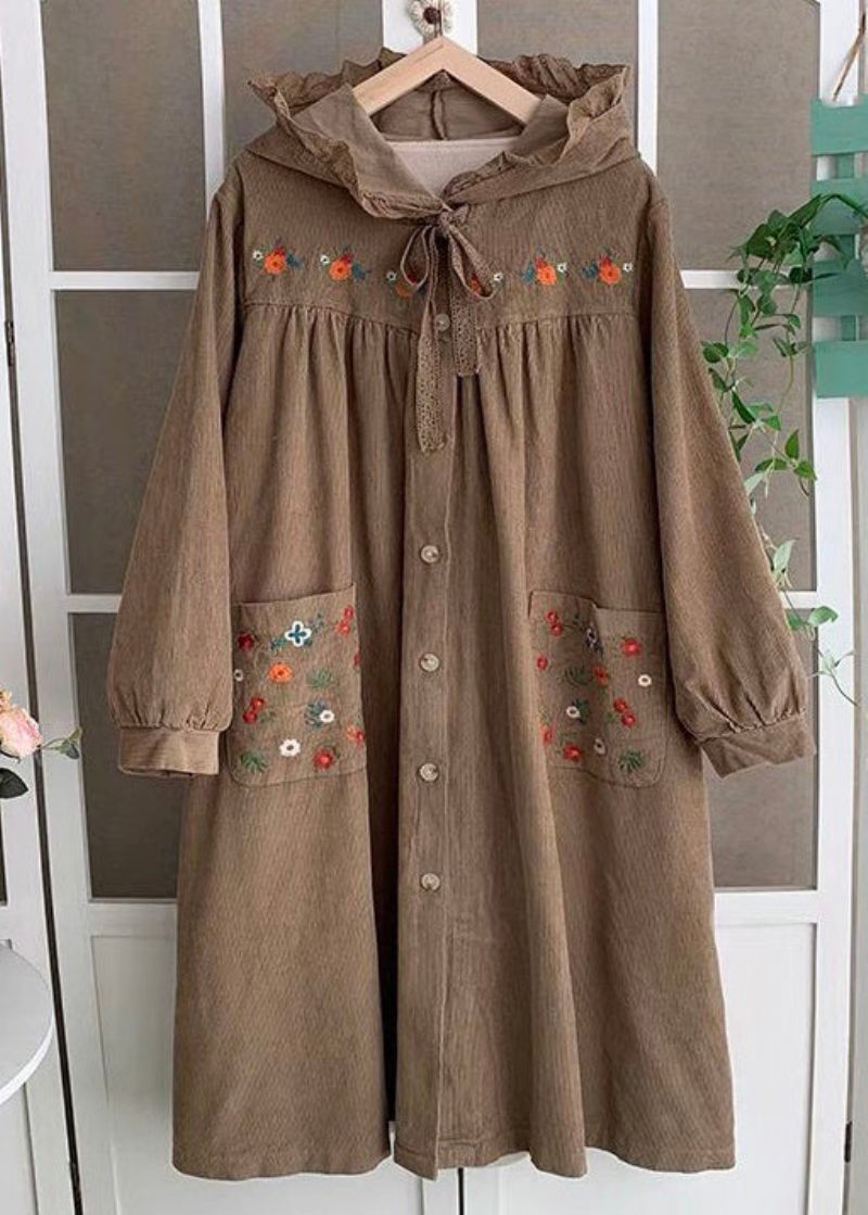 Plus Size Rosa Hooded Broderad Lace Up Cotton Långa Kappor Vår