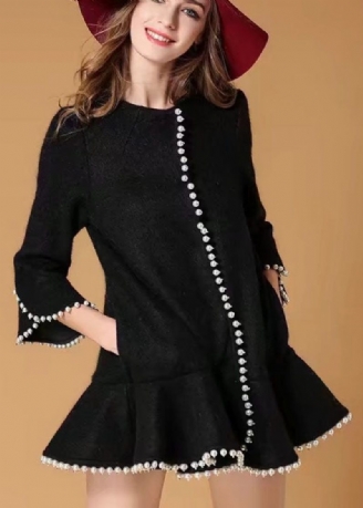Plus Size Svart Peter Pan Krage Knapp Bomullsfylld Kappa Långärmad