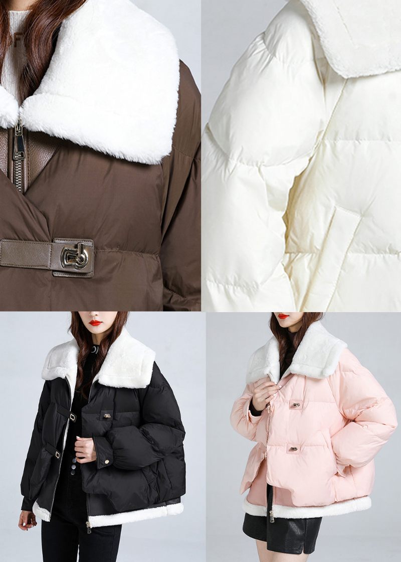 Plus Size Svarta Fickor Patchwork Fin Bomullsfylld Pufferjacka Vinter
