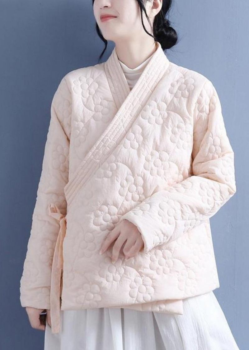 Retro Beige Spets Stereoskopiska Blommiga Fina Bomullsfyllda Jackor Spring
