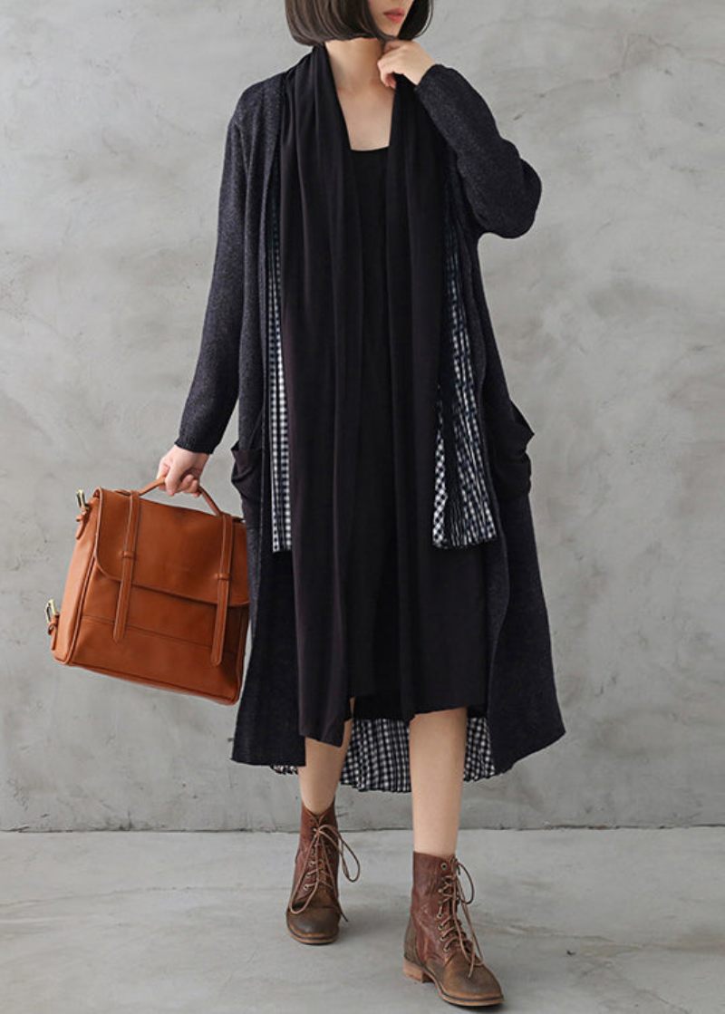 Retro Grå V-hals Rynkad Kashmir Stickad Tröja Kappor Höst