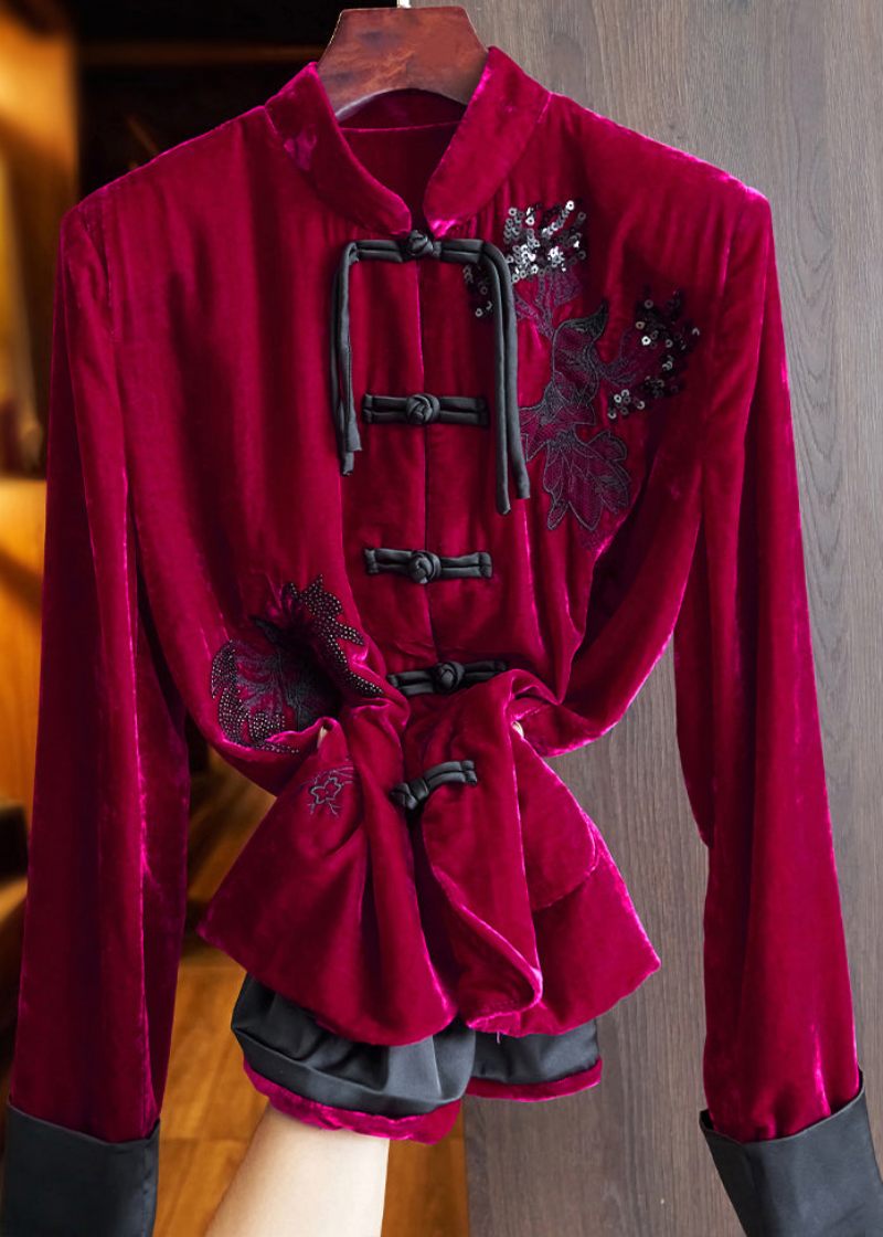 Retro Rose Broderade Paljetter Patchwork Silk Velour Kappor Höst