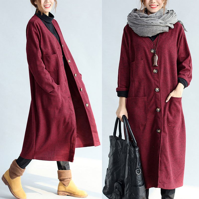 Röda Vinterkoftor I Bomull Plus Size Långärmade Vintage Trenchcoats I Ylle